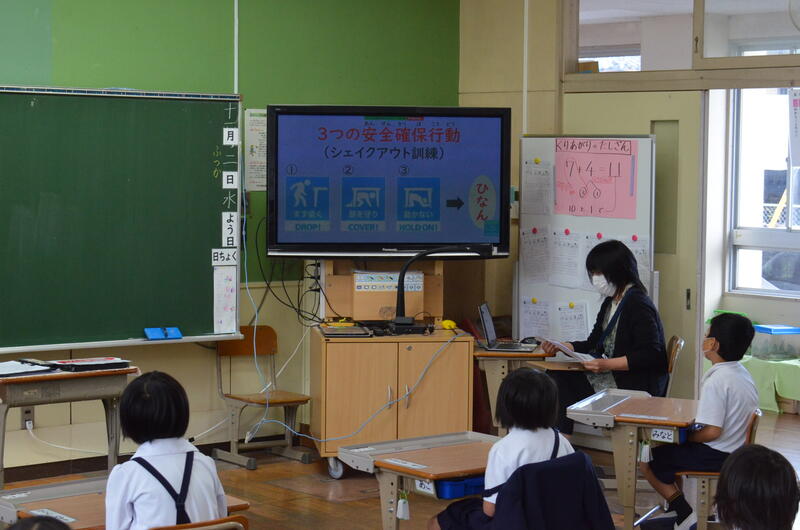 子供たちは、避難時の合い言葉「お・か・し・も・な」(おさない・かけない・しゃべらない・もどらない・なかない)をよく覚えていて、速やかに安全に避難していました。