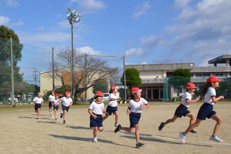 「自分に負けないぞ、あの子には負けたくない」と、高学年が力強く、真剣に走る姿を低学年が見て、「一生懸命がむしゃんよか」と感じて、粘り強く、しなやかに、したたかに走り、持久走を楽しんでほしいと願います。