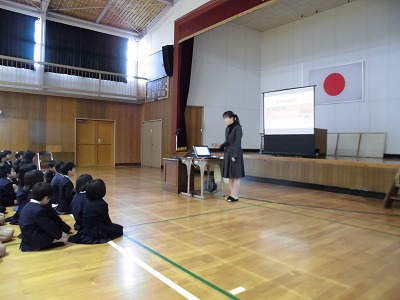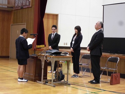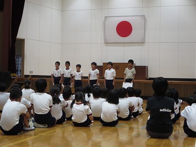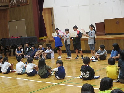 令和5年度学校生活(ブログ) 全ての記事 全ての記事 カテゴリ 今日の出来事 連絡事項 報告事項 ミーティング 本・雑誌 ニュース 映画・テレビ 音楽 スポーツ パソコン・インターネット ペット 総合学習 アニメ・コミック アーカイブ 2025年12月 (0) 2025年11月 (0) 2025年10月 (0) 2025年9月 (0) 2025年8月 (0) 2025年7月 (0) 2025年6月 (0) 2025年5月 (0) 2025年4月 (0) 2025年3月 (0) 2025年2月 (0) 2025年1月 (0) 2024年12月 (0) 2024年11月 (0) 2024年10月 (0) 2024年9月 (0) 2024年8月 (0) 2024年7月 (0) 2024年6月 (0) 2024年5月 (25) 2024年4月 (0) 2024年3月 (0) 2024年2月 (0) 2024年1月 (2) 2023年12月 (3) 2023年11月 (12) 2023年10月 (14) 2023年9月 (8) 2023年8月 (8) 2023年7月 (3) 2023年6月 (13) 2023年5月 (0) 2023年4月 (5) 2023年3月 (11) 2023年2月 (0) 2023年1月 (0) 2022年12月 (4) 2022年11月 (14) 2022年10月 (1) 2022年9月 (3) 2022年8月 (1) 2022年7月 (13) 2022年6月 (14) 2022年5月 (0) 2022年4月 (7) 2022年3月 (8) 2022年2月 (13) 2022年1月 (7) 2021年12月 (7) 2021年11月 (11) 2021年10月 (9) 2021年9月 (4) 2021年8月 (3) 2021年7月 (15) 2021年6月 (7) 2021年5月 (7) 2021年4月 (6) 2021年3月 (4) 2021年2月 (3) 2021年1月 (4) 2020年12月 (3) 2020年11月 (10) 2020年10月 (9) 2020年9月 (5) 2020年8月 (3) 2020年7月 (7) 2020年6月 (9) 2020年5月 (4) 2020年4月 (2) 2020年3月 (2) 2020年2月 (2) 2020年1月 (4) 2019年12月 (6) 2019年11月 (3) 2019年10月 (5) 2019年9月 (4) 2019年8月 (1) 2019年7月 (0) 2019年6月 (6) 2019年5月 (1) 2019年4月 (0) 2019年3月 (17) 2019年2月 (28) 2019年1月 (21) 2018年12月 (4) 2018年11月 (6) 2018年10月 (11) 2018年9月 (11) 2018年8月 (2) 2018年7月 (11) 2018年6月 (11) 2018年5月 (12) 2018年4月 (6) 20件 1件 5件 10件 20件 50件 100件 各委員会の発表 投稿日時 : 2018/05/17 学校サイト管理者 今年度の児童会は、企画委員会、健康委員会、環境委員会、図書委員会、体育委員会、給食委員会、放送委員会の6つの委員会が活動します。朝の集会では、各委員会から発表を行いました。これから1年間、学校のために素晴らしい活躍をしていくことを期待しています。 {{options.likeCount}} {{options.likeCount}} 防犯教室を実施しました 投稿日時 : 2018/05/16 学校サイト管理者 今日の2時間目に防犯教室を実施しました。龍峯駐在所から石工大輔さんに来ていただき、不審者から身を守るために気をつけることを話してもらいました。 「いかのおすし」についてや防犯ベルのチェックなど、たくさんのことを教えていただきました。最近、子どもたちを狙った事件が起きていますが、自分の身をしっかり守り、安全な毎日を過ごしてほしいと思います。 {{options.likeCount}} {{options.likeCount}} 運動会全体練習開始 投稿日時 : 2018/05/14 学校サイト管理者 今日から、運動会の全体練習が始まりました。最初に「どんな運動会にしたいか」をみんなで考え合いました。 運動会に向けて子供たちが、自分たちの活躍を、おうちの方や地域の方々に張り切って見せることができればと願っています。 {{options.likeCount}} {{options.likeCount}} PTA資源回収 投稿日時 : 2018/05/13 学校サイト管理者 今日は、朝から霧雨が降る中でしたが、予定通りPTA資源回収を実施しました。4年生から6年生までの子供たちも一緒に参加して、新聞や雑誌などの仕分け作業に精を出しました。 {{options.likeCount}} {{options.likeCount}} 応援団結団式 投稿日時 : 2018/05/10 学校サイト管理者 今日の朝の集会で、応援団結団式を行いました。まず、赤団、白団の団長が自己紹介や誓いの言葉を発表しました。また、「運動会の歌」の練習では、赤白の団がそれぞれ競い合って元気いっぱいに歌い、どちらの団も大いに盛り上がりました。 {{options.likeCount}} {{options.likeCount}} 運動会のテーマ決定 投稿日時 : 2018/05/09 学校サイト管理者 代表委員会の結果、運動会のテーマが決定しました。「団結し 勝利をつかめ 運動会」 このテーマのもと、がんばっていきます! {{options.likeCount}} {{options.likeCount}} バドミトン部練習開始 投稿日時 : 2018/05/08 学校サイト管理者 本日からバドミントン部の練習を始めました。火曜・木曜・金曜の週3回の練習を行います。みんなやる気満々で練習にがんばっていました。 {{options.likeCount}} {{options.likeCount}} お見知り遠足 投稿日時 : 2018/05/02 学校サイト管理者 今日は、子どもたちが楽しみにしていたお見知り遠足でしたが、あいにくの雨でした。そこで、体育館で1年生との歓迎会をして、各学年の歓迎の言葉や、ゲームをしたりしてみんなで楽しみました。 ジャンケン列車です。どっちが勝ったかな? 仲よし班ごとにお弁当を食べました。校内遠足でしたが、学年をこえてみんなで楽しんだので、みんな大満足の一日でした。 {{options.likeCount}} {{options.likeCount}} 部活動発会式 投稿日時 : 2018/05/01 学校サイト管理者 今日は、バドミントン部部活動の発会式を開きました。今年度は、8人の新入部員を迎え、総勢20名で活動します。子どもたちは、校長先生から部活動のよさについて話をしていただき、がんばろうという気持ちがさらに深くなったようでした。 {{options.likeCount}} {{options.likeCount}} 1年生の藤棚給食 投稿日時 : 2018/04/23 学校サイト管理者 今日は1年