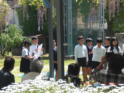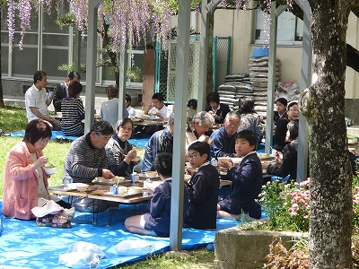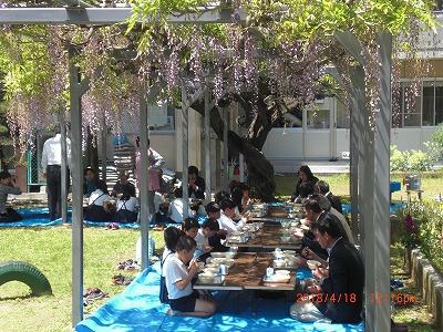 藤棚給食が始まりました。 投稿日時 : 2018/04/16 学校サイト管理者 今年は,藤棚の藤の花が例年になく早く咲き始めました。 さて、今日から藤棚給食を開きました。藤棚給食とは、おじいさんやおばあさん、地域の方々と一緒に給食を食べて、互いの交流を深める行事です。 今日は6年生の子どもたちが、笑顔いっぱい,楽しく給食をおいしそうに食べました。 {{options.likeCount}} {{options.likeCount}}