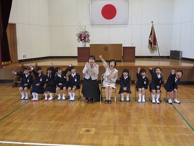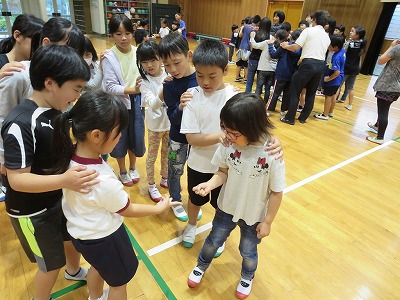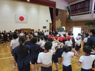 お見知り遠足 投稿日時 : 2018/05/02 学校サイト管理者 今日は、子どもたちが楽しみにしていたお見知り遠足でしたが、あいにくの雨でした。そこで、体育館で1年生との歓迎会をして、各学年の歓迎の言葉や、ゲームをしたりしてみんなで楽しみました。 ジャンケン列車です。どっちが勝ったかな? 仲よし班ごとにお弁当を食べました。校内遠足でしたが、学年をこえてみんなで楽しんだので、みんな大満足の一日でした。 {{options.likeCount}} {{options.likeCount}}