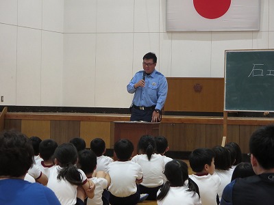 防犯教室を実施しました 投稿日時 : 2018/05/16 学校サイト管理者 今日の2時間目に防犯教室を実施しました。龍峯駐在所から石工大輔さんに来ていただき、不審者から身を守るために気をつけることを話してもらいました。 「いかのおすし」についてや防犯ベルのチェックなど、たくさんのことを教えていただきました。最近、子どもたちを狙った事件が起きていますが、自分の身をしっかり守り、安全な毎日を過ごしてほしいと思います。 {{options.likeCount}} {{options.likeCount}}