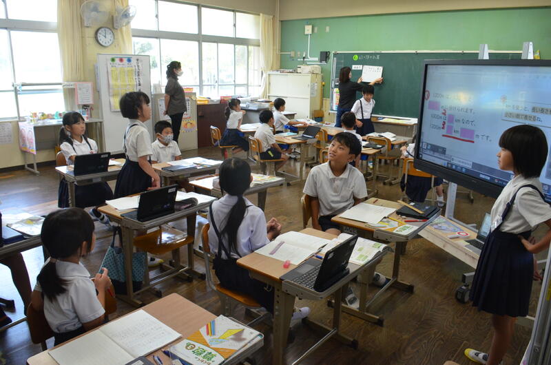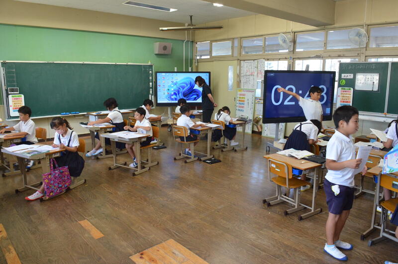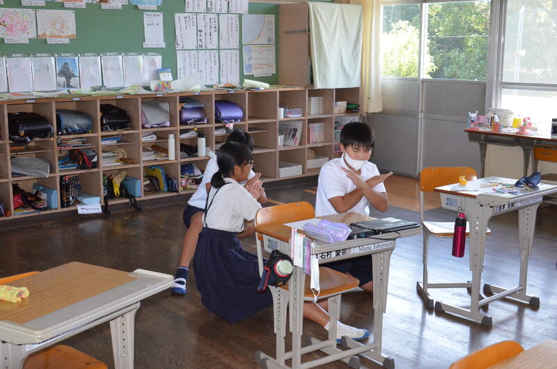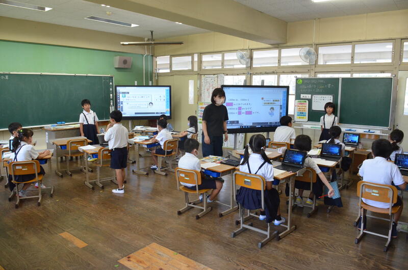 2年生・3年生は複式学級の授業にも慣れてきて、学習リーダが授業を進めることも上手にできてきました。