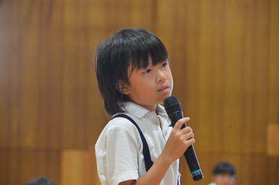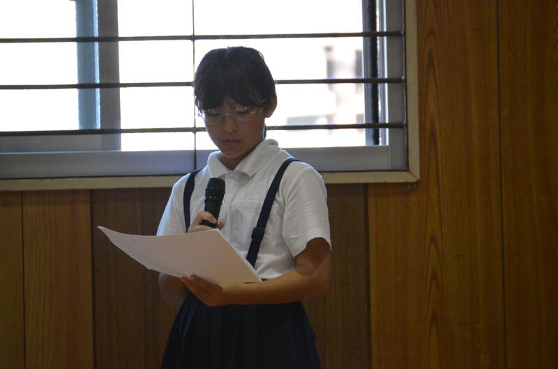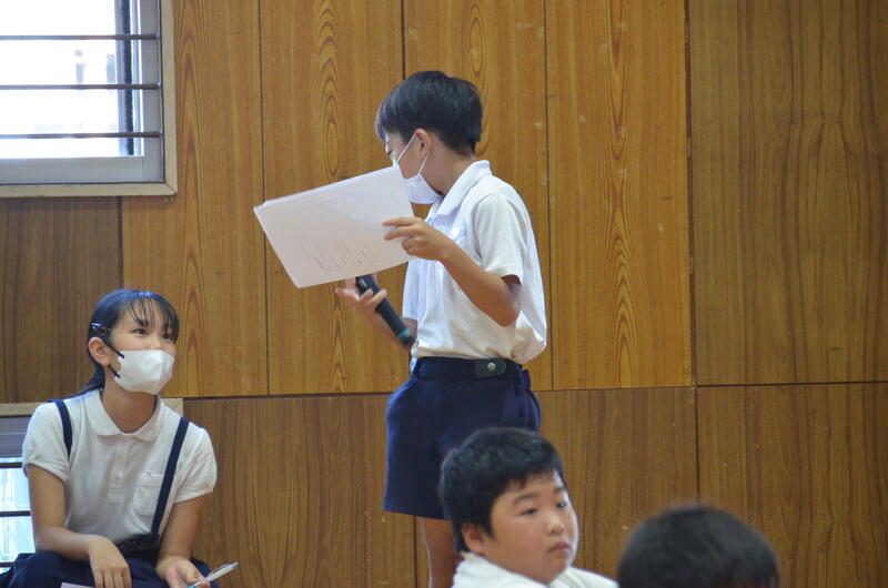 また、委員会活動で行っているアルミ缶回収やすいエコチェックの説明をして、環境問題の解決のために、一人一人にできることを考えて行動するように呼びかけてていました。この発表を聞いて、子供たちからの感想や意見のお返しもありました。