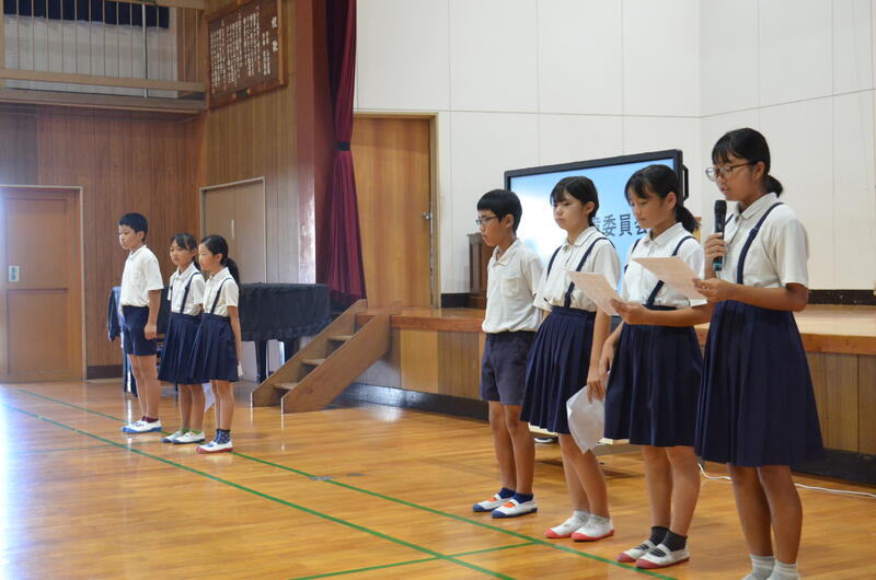 9月12日 児童集会を開きました。今回の集会では、放送環境委員会が環境問題やSDGsについて考えてほしいことを発表しました。