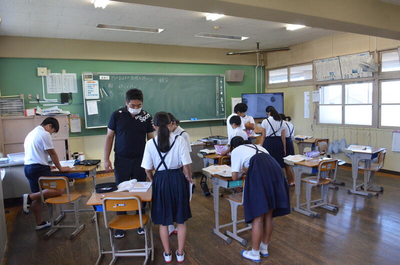 9月19日 昨日の研究授業の学びを活かす先生と対話をする子供たち。ともに学び合うことが一層活発になってほしいと願います。がんばれ!龍峯校生、本気でとことんチャレンジ。