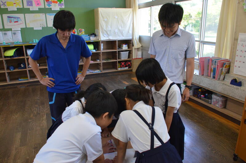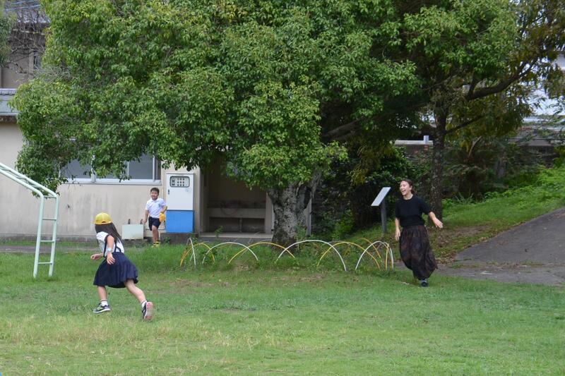 9月25日 昼休みに子供たちが、クイン先生と思いっきり追っかけをして遊んでいました。クイン先生はサッカーも得意だそうで、思いっきり走って追っかけていました。遊びの中で、お互いを知り合う機会を自然につくっていただいたクイン先生に感謝します。Thankus a lot. Quinn先生