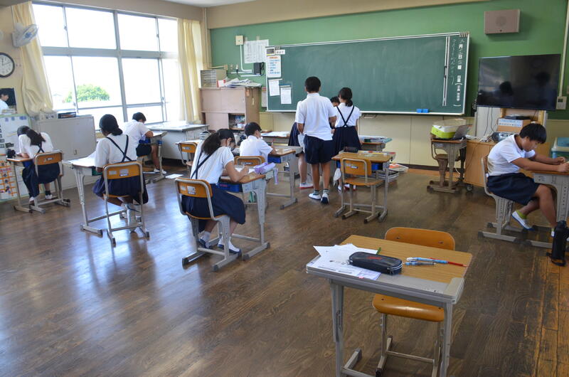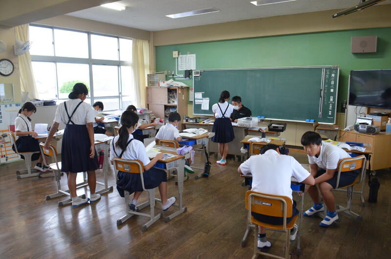 9月13日 教室では、子供たちが考えを深める対話をしたり、学習の振り返りと力試しのテストをしたりして頑張っています。