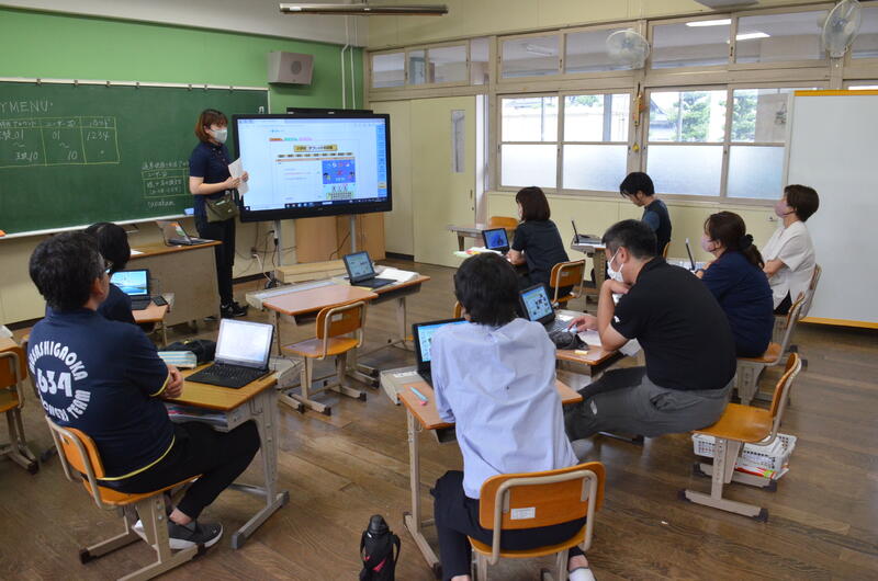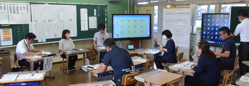 9月25日 タブレットPCを効果的に使うことができるように、ICT支援員のお力を借りて校内研修をしました。GIGAスクール構想のもと、先生方が積極的にタブレットPCを使って、学習効果をあげることができるようにしていきます。そして、子供たちの学びの個別最適化を進めたり、協働的な学習を進める道具として活用できる力を高めていきます。