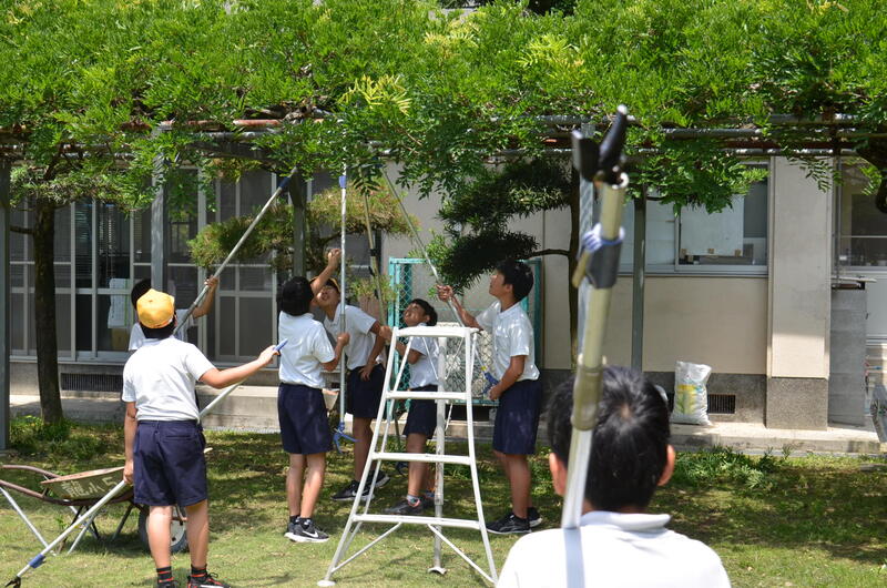 6月16日、6年生が藤棚の剪定をしました。