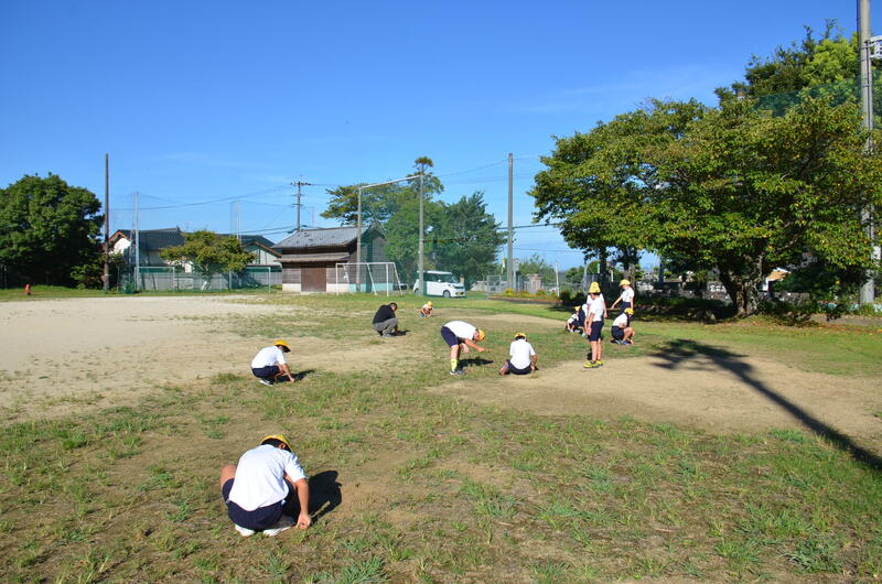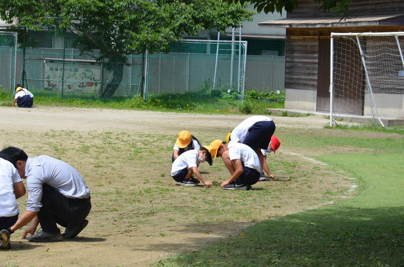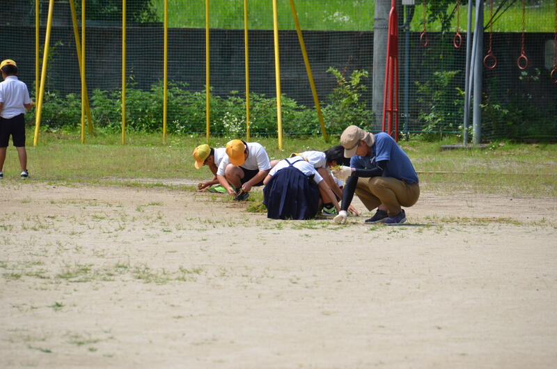 今日は運動場に生えだした草を抜くことをしました。この時期の草は、取っても取っても次々に伸びてきますので、運動場がすぐ草だらけになります。
