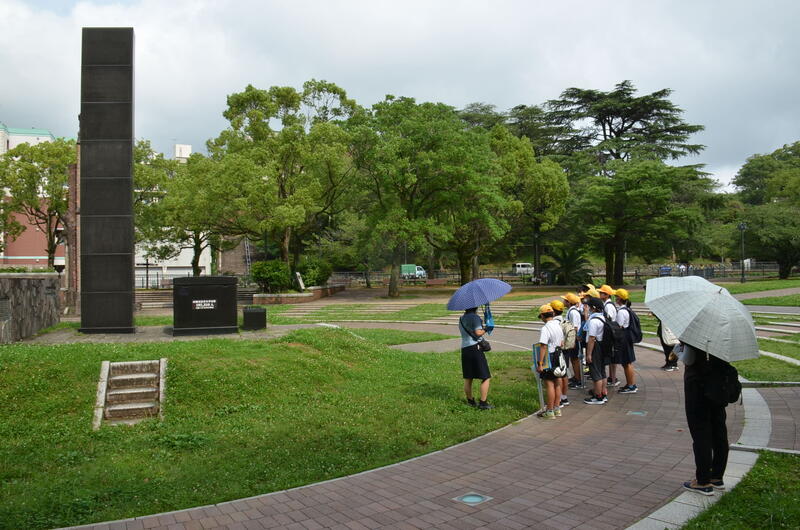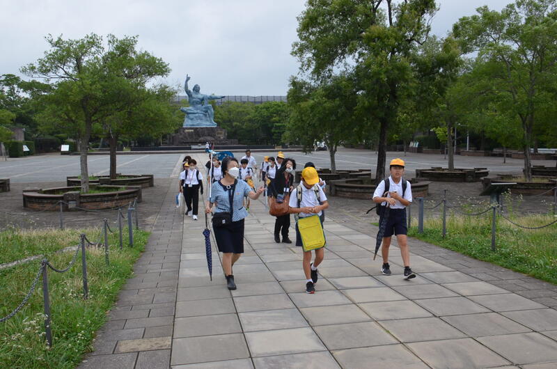 初日は、原爆資料館で講話を聴き、館内の展示物を見学し、原爆の被害や悲惨さを学習しました。追悼空間で平和集会開き、フィールドワークに出かけました。