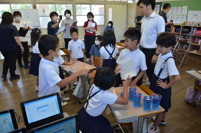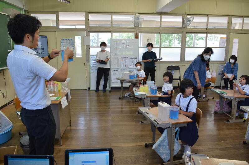 7月11日(火)、2年1組担任中川大希教諭が、算数「かさ」の研究授業を行いました。