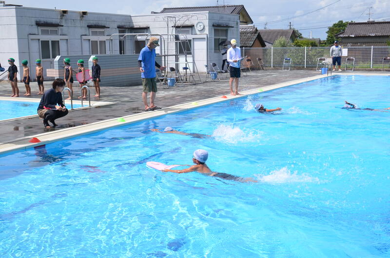 この水泳教室は八代小体連の年間行事で毎年開いていますが、多くの子供たちが泳ぎを上達させ、目標を達成させる素晴らしい水泳教室ですので、来年も子供たちが目標達成をめざし、たくさん参加することを期待しています。