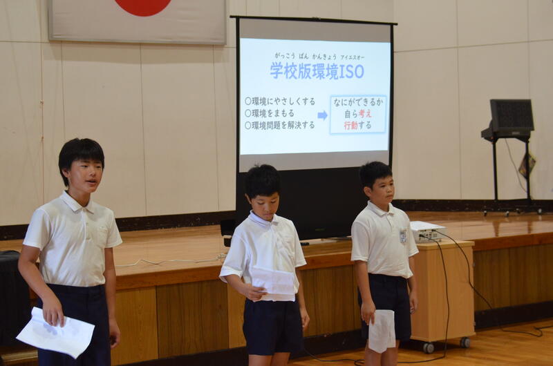 最初は、放送・環境委員会が学校版環境ISOの取組について説明しました。