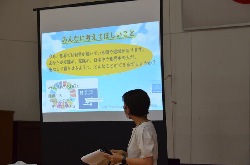平和集会では、岩﨑先生が、日本はなぜ他の国々と戦争をしたのか。どんな戦争をしたのかを分かりやすく話されました。