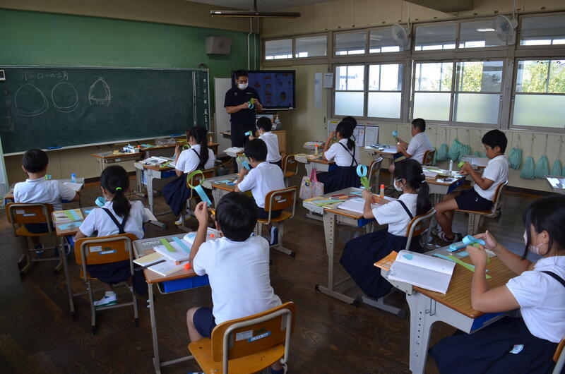 5年生が宿泊教室でマリン活動をするときに、ライフジャケットを着用することもありますが、日頃は身につけることがないので、今回はとても貴重な経験になりました。