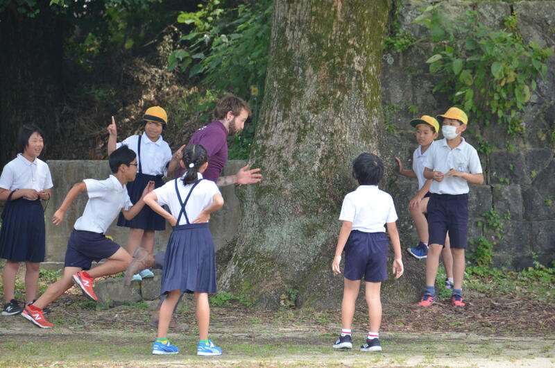 6月5日 子供たちが、ジェシー先生から英語を習い始めました。昼休みには、「けいどろ」でしょうか、一緒にグランドを走り回り、子供たちの笑顔をたくさん引き出していました。子供から渡されたかなへびも、心配そうに手にのせて、住むべき場所に返していました。ジェシー先生の心根に感謝します。