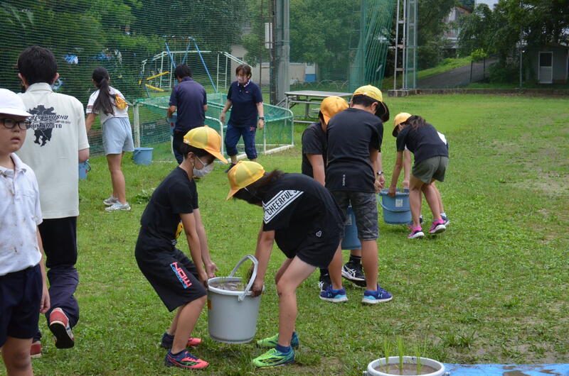 6月25日 5年生がバケツで米作りにチャレンジしました。