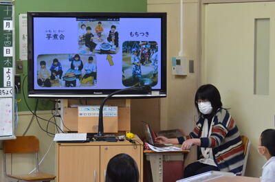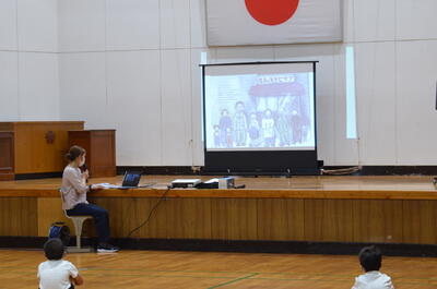 野田先生は、今から約20年前にここ龍峯小学校に勤めていらっしゃいました。そこで今回は、当時の様子を写真を織り交ぜながらお話をなさいました。