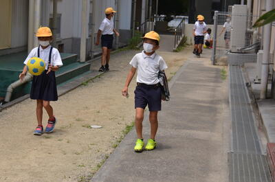 今回は業間に行いましたので子供たちは外で遊んでいたり、教室で次の準備をしたりしていましたが、火災発生の非常放送をよく聞き、一人一人が状況を考えて素早い避難をすることができました。
