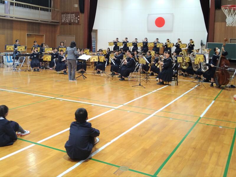 11月25日(木)の始業前の時間に全校集会を行いました。今回は、森本先生が、52年目を迎えようとしている「九州一周マラソン」の歴史の深さやその効果の大きさ、先輩の頑張りなどについて、自作のスライド資料を示しながら話されました。そして、最後には、「トルコ行進曲」の素晴らしいピアノ演奏も披露され、子供たちは大喜びでした。