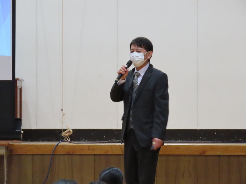 1月20日(木)の始業前の時間に、全校集会を行いました。