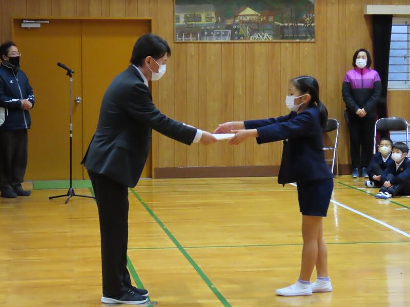 また、会終了後には、2年生の子供が提出した習字が熊本県大会で「佳作」に輝きしたので表彰式を行いました。