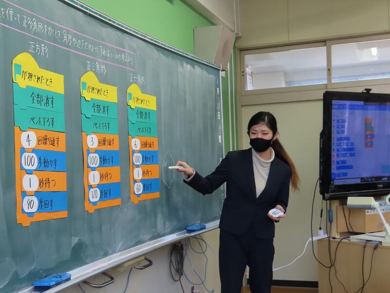 スクラッチというプログラミングソフトを活用した算数科の授業でした。