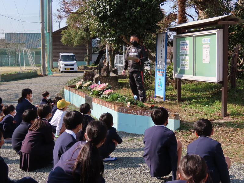 始業式では、「3学期は次の学年につなげていくための準備のときでもある。何をするにも準備をして臨むと、いい結果が出やすい。この1年間をきちんと振り返り、よい準備をして来年度に備えましょう。」という話を、新庄剛志監督が選手時代にしっかりと準備をしてから試合に臨んでいたという話をもとにしました。