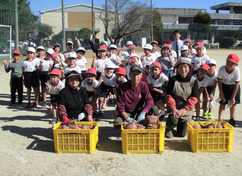 当日は、地域にお住まいの福嶋様ご夫妻と下川様においでいただき、子供たちが芋掘りをし易いように、事前に茎や葉を切り取っていただきました。その他、福嶋様ご夫婦と下川様二は、植え付けから、途中の管理などにもご尽力いただきました。誠にありがとうございました。