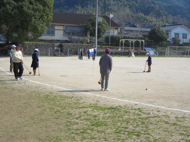 26日(月)に世代間交流グランドゴルフ大会に、六年生が参加しました。まちづくり協議会の方々や子どもたちの家族のおじいさん、おばあさん方と一緒にグランドゴルフを楽しみました。初めてグランドゴルフをした子たちもたくさんいましたが、親切に教えてもらいながらゲームをして、楽しい一時を過ごしました。