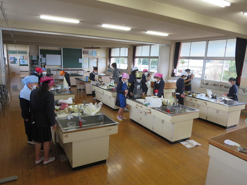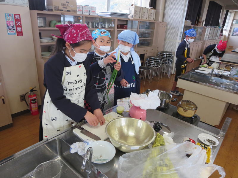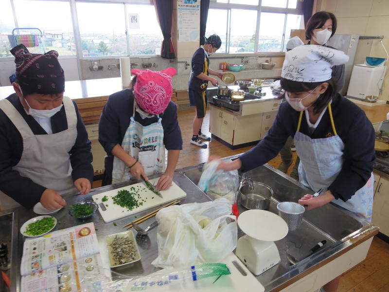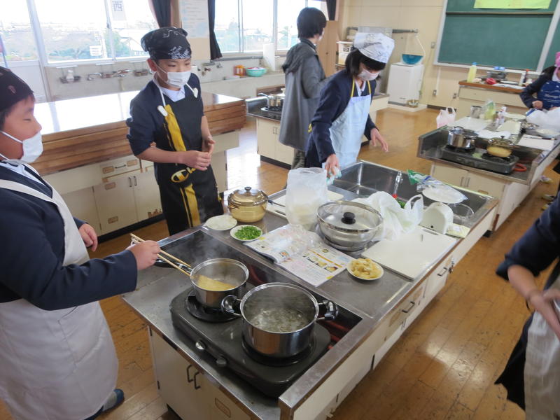 今日は、5年生の調理実習で、ご飯と味噌汁を作りました。それぞれに材料を持ち寄って、どの班もみんなで協力し合って料理作りにがんばりました。ごはんは、透明の耐熱容器で炊き上がる様子を目で追いながら炊きました。おいしいご飯ができました。