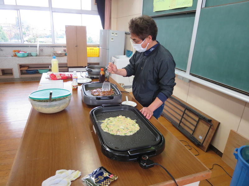 岩木先生も特製お好み焼きを作ってみんなに振る舞いました。