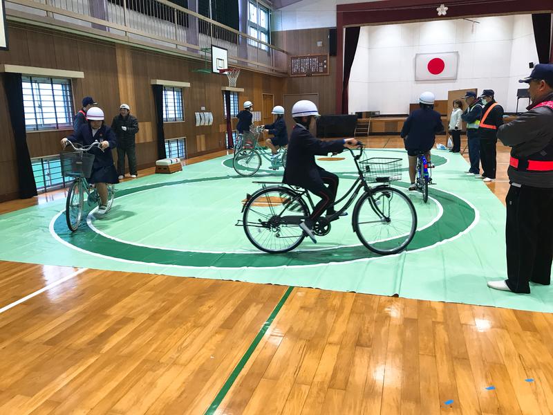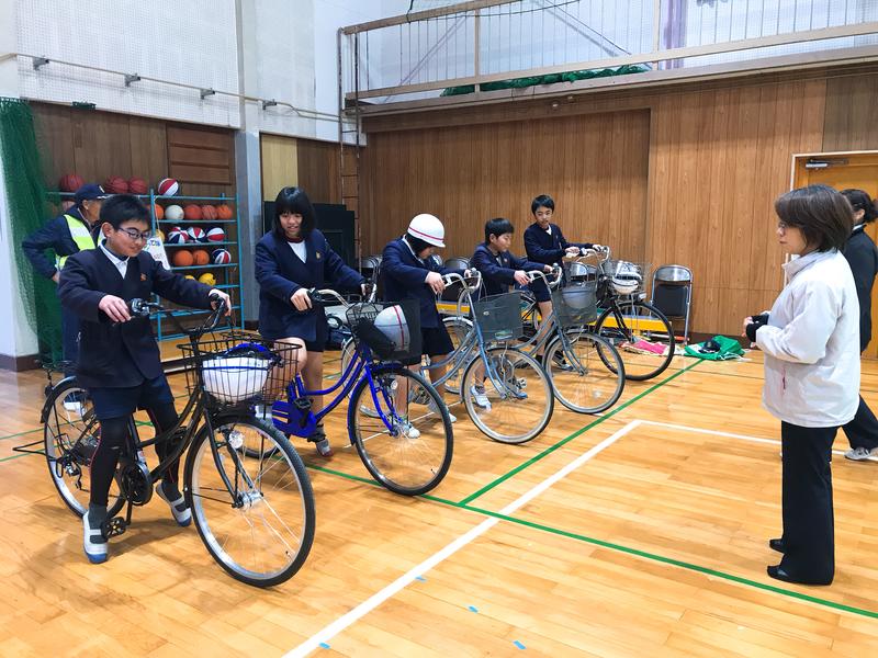 6年生は、もうすぐ卒業を迎えますが、中学生になると多くの子どもたちが自転車通学をします。そこで、今日は自転車教室を実施しました。