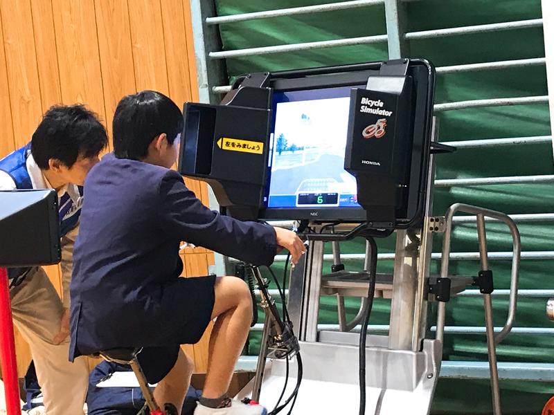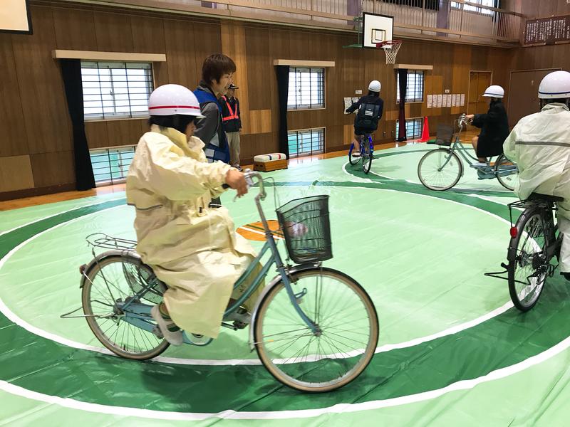 実際の通学の様子を想定して、バッグを背負ったり、雨具を着たりして、8の字コースを走行してみました。
