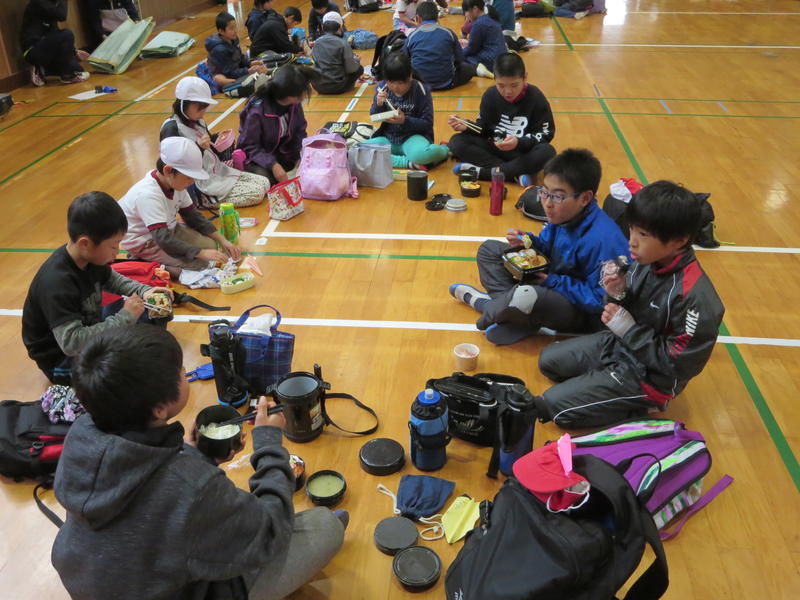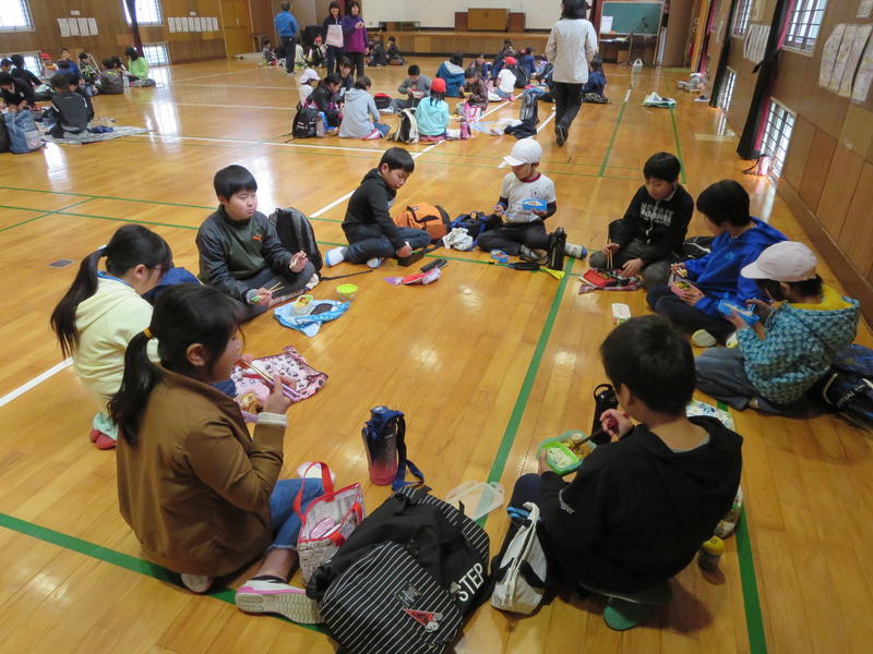 昼は、なかよし班ごとに、おうちの方の愛情のこもった弁当を食べました。