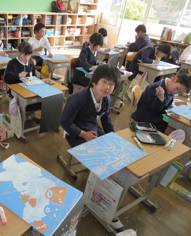 5年生は、一版多色版画の制作に取り組んでいます。版木に下絵を描き、彫刻刀で彫った後、いろんな色をつけながら版画を完成させていきます。どんな作品ができるか楽しみです。