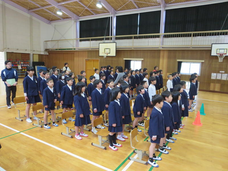 3月22日(金)に、卒業式を行います。今日から、卒業式の練習を体育館で始めました。ピリッとした緊張の中、1~5年生は、卒業式後半の「卒業の詩」で呼びかけや合唱の練習をしました。6年生の卒業に感謝の思いを込めながらの練習でした。