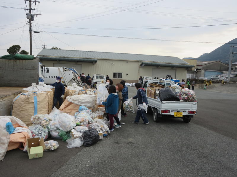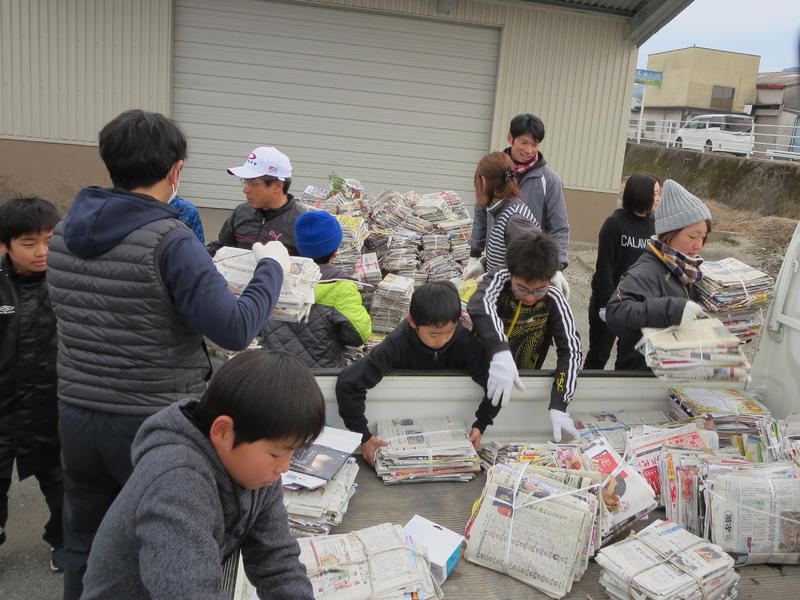 4年生以上の子供たちも参加して回収にがんばりました。保護者や地域の皆様方のおかげでたくさんの資源物が集まりました。ご協力ありがとうございました。