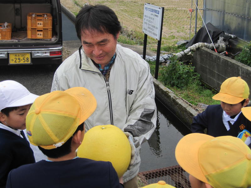 先日、3年生は、デコポンや八代特産の晩白柚を作っておられるクラスのSくんのおうちのハウスを見学しました。ハウスの中を見学したり、知りたいことを丁寧に教えてもらったりして、校区の素晴らしさをあらためて感じた3年生の子どもたちでした。
