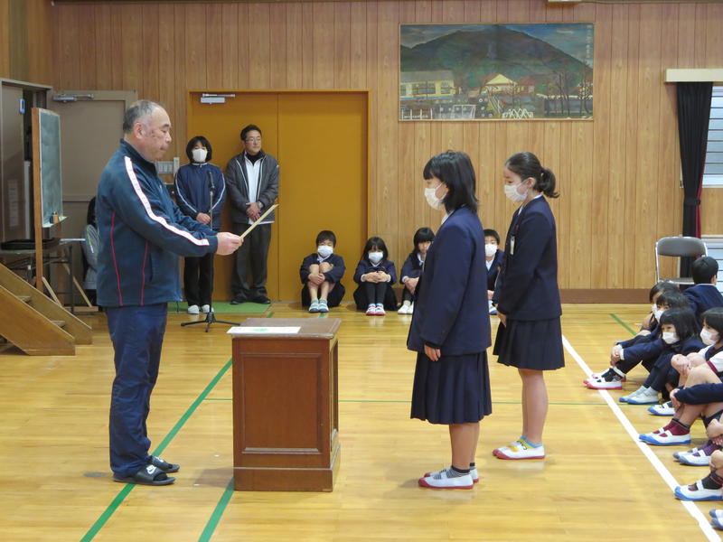 その後、工作展やバドミントン大会の表彰を行い、入賞した子どもたちの努力をたたえました。