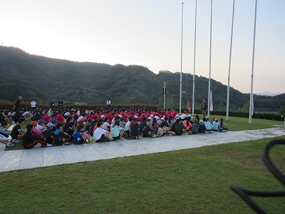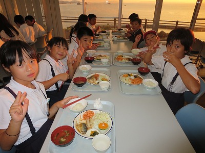 5年集団宿泊教室(2) 投稿日時 : 2018/10/03 学校サイト管理者 5年生の集団宿泊教室2日目は、みんな元気に朝の目覚めを迎えました。澄み渡った海と空が印象的でした。 朝から、東間小、錦中、山江中の子どもたちと一緒に集まり、朝の集いをしました。各学校の紹介では、藤棚給食や九一運動などの紹介をしました。 {{options.likeCount}} {{options.likeCount}}