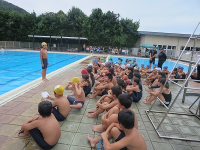 水泳大会 投稿日時 : 2018/09/07 学校サイト管理者 朝から雨の予報が出ていましたので、今日の水泳大会ができるかどうか、大変心配しましたが、みんなの願いが点に通じたのか、無事、大会を開くことができました。1学期、水泳の学習を始めた頃から考えると、子どもたちは、それぞれの力を十分に伸ばし立派な泳ぎを見せてくれました。 {{options.likeCount}} {{options.likeCount}}