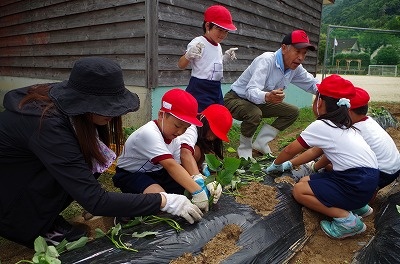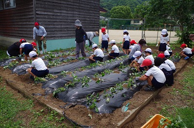 いものなえうえ(1,2年) 投稿日時 : 2018/06/07 学校サイト管理者 6月7日(木)に1,2年生は、いものつるを植えました。地域の方々からいものつるをいただき、うねづくりからビニールがけ、後の水やりなど、たくさんのお力添えをいただき、本当にありがとうございました。 苗の植え方をやさしく教えていただきました。 どんどん苗の植え付けが進んでいます。皆さんの温かい気持ちにふれることができて、みんな大喜びでした! {{options.likeCount}} {{options.likeCount}}