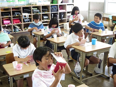 令和5年度学校生活(ブログ) 全ての記事 全ての記事 カテゴリ 今日の出来事 連絡事項 報告事項 ミーティング 本・雑誌 ニュース 映画・テレビ 音楽 スポーツ パソコン・インターネット ペット 総合学習 アニメ・コミック アーカイブ 2025年12月 (0) 2025年11月 (0) 2025年10月 (0) 2025年9月 (0) 2025年8月 (0) 2025年7月 (0) 2025年6月 (0) 2025年5月 (0) 2025年4月 (0) 2025年3月 (0) 2025年2月 (0) 2025年1月 (0) 2024年12月 (0) 2024年11月 (0) 2024年10月 (0) 2024年9月 (0) 2024年8月 (0) 2024年7月 (0) 2024年6月 (0) 2024年5月 (25) 2024年4月 (0) 2024年3月 (0) 2024年2月 (0) 2024年1月 (2) 2023年12月 (3) 2023年11月 (12) 2023年10月 (14) 2023年9月 (8) 2023年8月 (8) 2023年7月 (3) 2023年6月 (13) 2023年5月 (0) 2023年4月 (5) 2023年3月 (11) 2023年2月 (0) 2023年1月 (0) 2022年12月 (4) 2022年11月 (14) 2022年10月 (1) 2022年9月 (3) 2022年8月 (1) 2022年7月 (13) 2022年6月 (14) 2022年5月 (0) 2022年4月 (7) 2022年3月 (8) 2022年2月 (13) 2022年1月 (7) 2021年12月 (7) 2021年11月 (11) 2021年10月 (9) 2021年9月 (4) 2021年8月 (3) 2021年7月 (15) 2021年6月 (7) 2021年5月 (7) 2021年4月 (6) 2021年3月 (4) 2021年2月 (3) 2021年1月 (4) 2020年12月 (3) 2020年11月 (10) 2020年10月 (9) 2020年9月 (5) 2020年8月 (3) 2020年7月 (7) 2020年6月 (9) 2020年5月 (4) 2020年4月 (2) 2020年3月 (2) 2020年2月 (2) 2020年1月 (4) 2019年12月 (6) 2019年11月 (3) 2019年10月 (5) 2019年9月 (4) 2019年8月 (1) 2019年7月 (0) 2019年6月 (6) 2019年5月 (1) 2019年4月 (0) 2019年3月 (17) 2019年2月 (28) 2019年1月 (21) 2018年12月 (4) 2018年11月 (6) 2018年10月 (11) 2018年9月 (11) 2018年8月 (2) 2018年7月 (11) 2018年6月 (11) 2018年5月 (12) 2018年4月 (6) 20件 1件 5件 10件 20件 50件 100件 猛暑の中、勉強にがんばっています。 投稿日時 : 2018/07/19 学校サイト管理者 今年度は、連日、例年にない暑さに見舞われています。今日の教室の温度は35度を超えていました。そんな中、子供たちは勉強に頑張っています。まるでサウナ風呂の中のような、うだるような暑さの中、各教室では、昨年度付け替えられた最新式の扇風機がフル稼働、大活躍していました。 いよいよ明日は終業式ですが、体調を崩さないようにして1学期最後の日を迎えてもらいたいです。 {{options.likeCount}} {{options.likeCount}} 八代市音楽会に向けて 投稿日時 : 2018/07/18 学校サイト管理者 7月26日に八代市音楽会が開かれます。本校からは、3,4年生が出場します。今日は、音楽会に向けて体育館を使って練習しました。ステージの位置取りなどを確かめて本番のように合唱や合奏をしました。子供たちも本番が近づいてきたことを実感したようで、真剣な取り組みようでした。 {{options.likeCount}} {{options.likeCount}} 熱中症にならないために 投稿日時 : 2018/07/13 学校サイト管理者 今年は、毎日大変な暑さが続いていますね。保健室前には、子供たちが熱中症にならないように、掲示板に分かりやすく掲示ををしています。熱中症にかからないように、十分注意をしてほしいと思います。 {{options.likeCount}} {{options.likeCount}} アンナ先生とのお別れ 投稿日時 : 2018/07/10 学校サイト管理者 残念なことに、昨年から1年間、外国語の学習でお世話になっていたアンナ先生と、今学期でお別れすることになりました。 各学級からお別れの言葉や寄せ書きをして、アンナ先生との別れを惜しみました。わかりやすく、また楽しく英語を教えていただいて、本当に感謝をしています。新たな場所で活躍をして、いつまでもお元気でお過ごし下さい。ありがとうございました。 {{options.likeCount}} {{options.likeCount}} 明日は七夕 投稿日時 : 2018/07/06 学校サイト管理者 明日は、七夕ですね。各教室では、短冊にそれぞれの願いをこめて書いて、飾り付けをしました。「足が速くなりますように。」「水えいが、じょうずになりますように。」「家族のみんなが元気になれますように。」などなどいろいろな願いが飾られています。みんなの願いがかなえばよいですね。 {{options.likeCount}} {{options.likeCount}} 人権作品巡回展 投稿日時 : 2018/07/02 学校サイト管理者 6月は心の絆を深める月間でしたが、本校に、八代市で募集された人権作品のうち優秀な作品が巡回されてきました。ポスターや作文、標語、習字など、それぞれの作品にこめられた作者の思いがしっかりと伝わってきました。 {{options.likeCount}} {{options.likeCount}} 歯磨き指導 投稿日時 : 2018/06/28 学校サイト管理者 現在、各学年で歯磨き指導を実施しています。 養護教諭の荒嶽先生から歯の大切さについて話を聞いた後、歯磨きが上手にできているかチェックをしてみました。しっかりと歯磨きをして虫歯のない健康な毎日を過ごしていきましょう。 {{options.likeCount}} {{options.likeCount}} 童話発表会 投稿日時 : 2018/06/27 学校サイト管理者 今日は、童話発表会を実施しました。各学年の代表6人のの子どもたちが、童話を発表しました。面白い話、感動する話など、各学年の代表だけあって、それぞれの持ち味を十分に生かした素晴らしい発表でした。 これからも、たくさん本に親しんでいきたいものですね。 {{options.likeCount}} {{options.likeCount}} 給食試食会 投稿日時 : 2018
