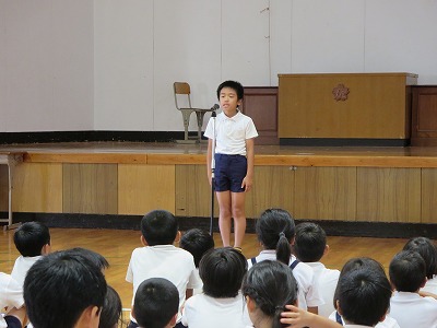 童話発表会 投稿日時 : 2018/06/27 学校サイト管理者 今日は、童話発表会を実施しました。各学年の代表6人のの子どもたちが、童話を発表しました。面白い話、感動する話など、各学年の代表だけあって、それぞれの持ち味を十分に生かした素晴らしい発表でした。 これからも、たくさん本に親しんでいきたいものですね。 {{options.likeCount}} {{options.likeCount}}