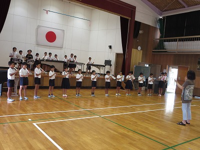 八代市音楽会に向けて 投稿日時 : 2018/07/18 学校サイト管理者 7月26日に八代市音楽会が開かれます。本校からは、3,4年生が出場します。今日は、音楽会に向けて体育館を使って練習しました。ステージの位置取りなどを確かめて本番のように合唱や合奏をしました。子供たちも本番が近づいてきたことを実感したようで、真剣な取り組みようでした。 {{options.likeCount}} {{options.likeCount}}