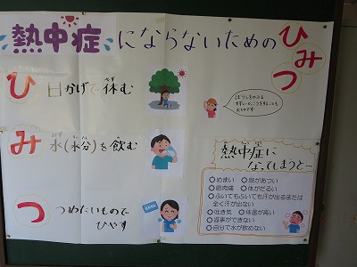熱中症にならないために 投稿日時 : 2018/07/13 学校サイト管理者 今年は、毎日大変な暑さが続いていますね。保健室前には、子供たちが熱中症にならないように、掲示板に分かりやすく掲示ををしています。熱中症にかからないように、十分注意をしてほしいと思います。 {{options.likeCount}} {{options.likeCount}}