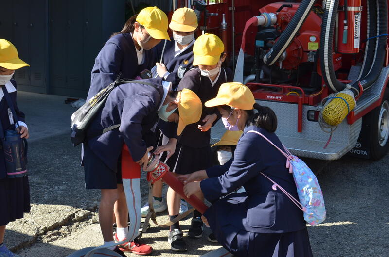 子供たちにとっては先輩の活躍する姿や地域の消防施設など、なかなか見聞きできない体験をすることができたので、地域とつながることの良い学びの時間になりました。